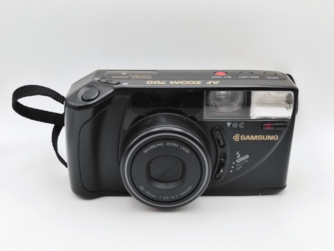 Die Samsung AF Zoom 700 ist eine kompakte Autofokus-Kamera, die in den 1990er Jahren auf den Markt gebracht wurde. Die Kamera verfügt über einen 35-70mm-Zoomobjektiv und ist mit einem eingebauten Blitz ausgestattet, der bei Bedarf automatisch ausgelöst wird.