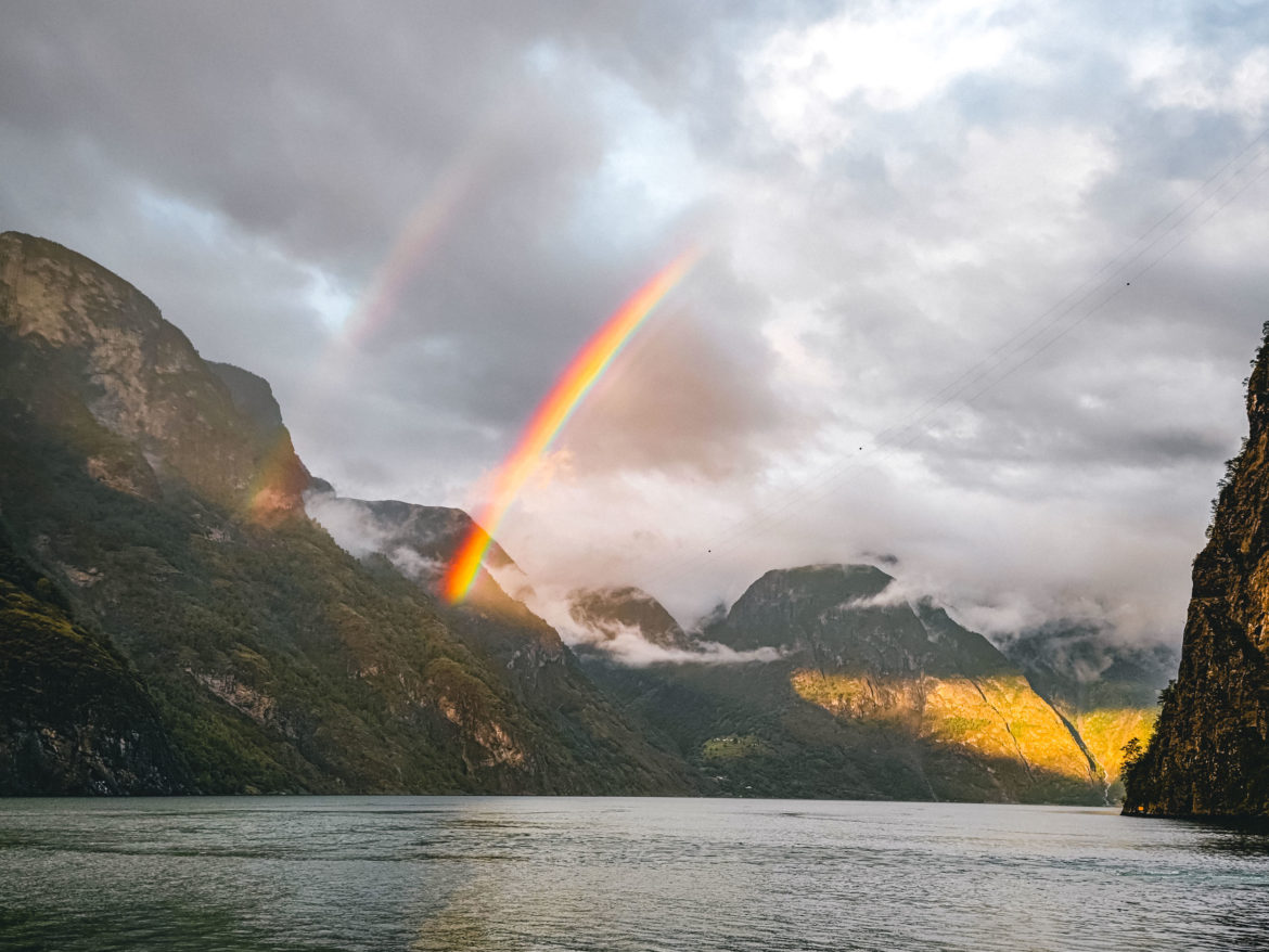 Uns blieb nichts anderes übrigen als weiter bis zum Ort Undredal zu fahren – hier gab es einen weiteren Campingplatz. Was wir nicht wussten, der Ort war tagszuvor auch nicht zu erreichen – was sich für uns als großer Glücksfall heraus stellte. Alle Camper auf den Platz wollten ganz schnell weg und wir hatten einen Stellplatz mit besten Blick auf den Aurlandsfjord. Endlich mal ein bisschen Glück im Unglück. Undredal ist ein wunderschönes Örtchen, sehr klein, und berühmt für seinen Käse – ein Nationalgericht Norwegens und auch beliebt bei Touristen. Die Vermieter des Platzes besitzen auch ein Restaurant direkt am Wasser und bereiten mit sehr viel Liebe, tolle Gerichte zu. Man sollte aber Zeit mitbringe, Abends ist hier viel los!